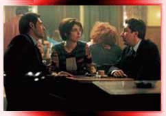 Alain Chabat y Gérard Lanvin) mientras aconseja en vano a la resignada Clara